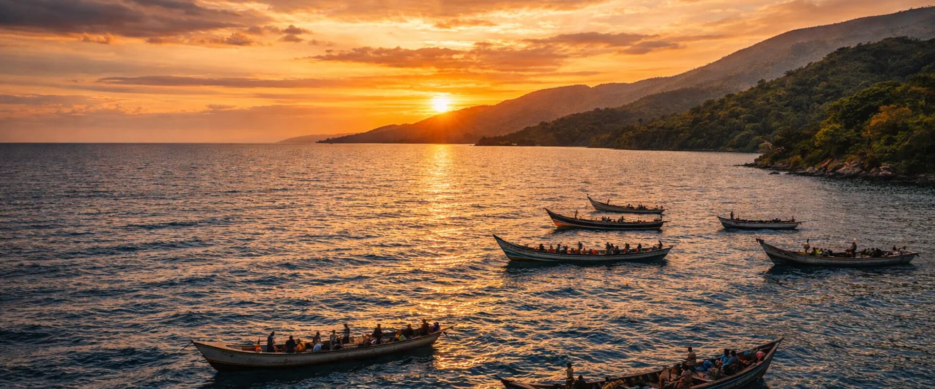 | luanda-bay.jpg | Golden hour panoramic view of Luanda Bay and Marginal promenade - Angola's capital city with modern skyline, palm-lined waterfront boulevard, fishing boats in the bay, Atlantic Ocean reflecting sunset. Mo'Joe: ๐ค Robot | Radim Kaufmann / KWTF | ยฉ KWTF 2026 AI Generated | Kaufmann World Travel Factbook |